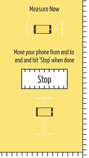 With an easy to use interface you can measure anything, just place your smartphone on the surface you wish to measure, click the “Start” button, lift the smartphone and move it quickly in a straight line to the end point and press the “Stop” button. That's it!