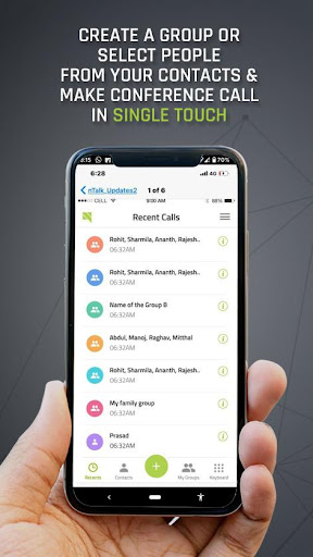 Create group or select people from your contacts & Make conference call in Single touch.