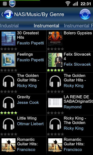 - remotely browse and play media files and Albums from 'Networked Media Jukebox' (NMJ) database (including databases on network shares)
