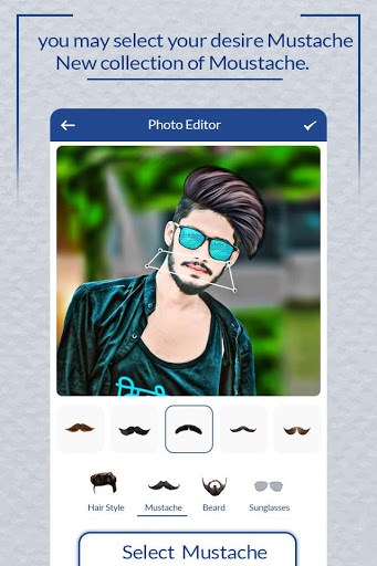 using this man hair style or man photo editor app.Try specially designed hairs and mustache styles maker very easily. Use our Man Hair Mustache Style changer make up app and give a very smart and handsome look to your pic.