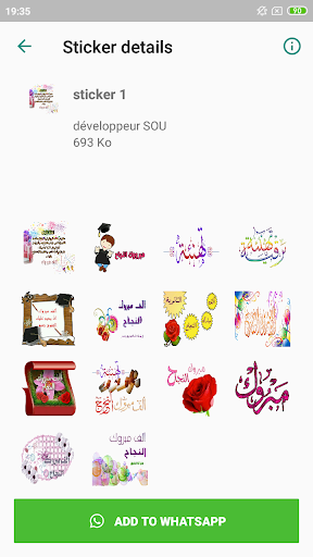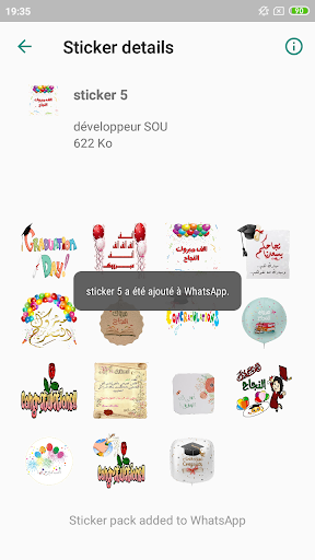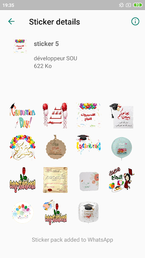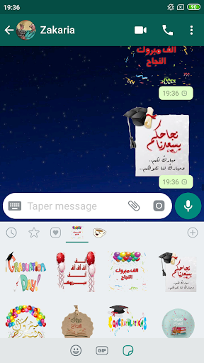 The application contains stickers, congratulations on success, congratulations on graduation and congratulations for a job promotion.