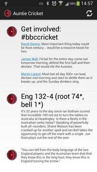 If a day's cricket doesn't appear, select "Find latest feed" from the updates menu. Note, currently, if multiple cricket events are happening only the main one on the BBC sports page will be picked up. Find latest feed uses about 200kb, so only hit it if your data is incorrect.