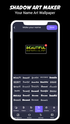 Name Art, add your signature to other photos or as your email signature. Create Name Art with Artistic Style Fonts created for you. Name Art Makers comes with fonts and styles, Stickers to decorate your name, Create Mirror Name Pics with different Styles and Colors and decorate with Picture Stickers. Stickers categories include Love Stickers, Baby Stickers for Baby Names and 100's of Emoji Stickers.