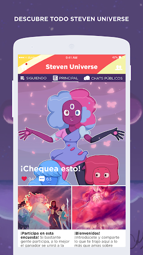 La red social más grande solamente para los amantes de SU. Conoce otras personas como tú y discute tus personajes favoritos, fan art, y más. Comparte tu opinión con una audiencia enorme de personas con ideas afines a las suyas. En esta aplicación puedes: