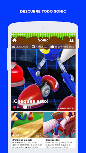 Únete a la comunidad de más rápido crecimiento de Sonic. Conoce a otros jugadores y fans, discute sobre presonajes y descubre creaciones hechas por fans. Amino para Sonic en Español es como un foro, chat y comunidad de fans, ¡en tan solo un lugar!