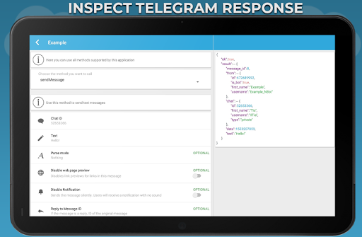 Is highly recommended to read the original documentation from telegram before using this app!