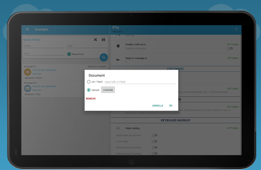 Test the behaviour of your bots, by receiving updates and calling all the standard methods provided by Telegram, with an user friendly GUI that makes everything easy and nice to see.