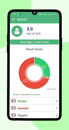 📌 You can choose test-time, questions and chapters and then click button take test.Easily start exam and after complete mock test you can see full detailed result of mock test.