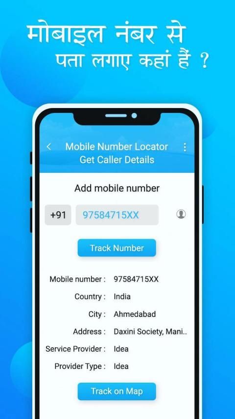 Phone number Tracker application helps you to track any phone number from India. You can search for any mobile number to find the contact name and the location. The city area, state, country and service operator of the phone number will be displayed and the geographic location will be shown on the maps.