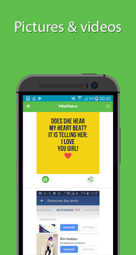 Now with WhatStatus App you can download and save Status picture, video or gif for Whatsapp in your device and share with other users if you like it.