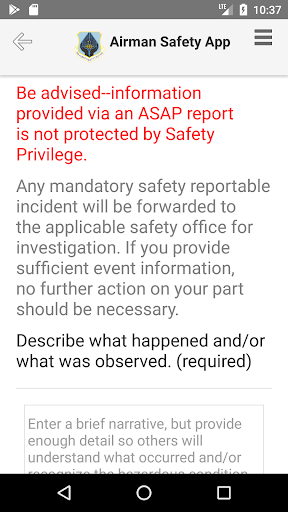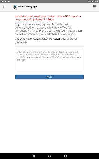This application provides a simple-to-use touch-point for anyone to report a hazardous condition or event. Initiate a safety report just by answering a series of simple questions. It only takes a few minutes.