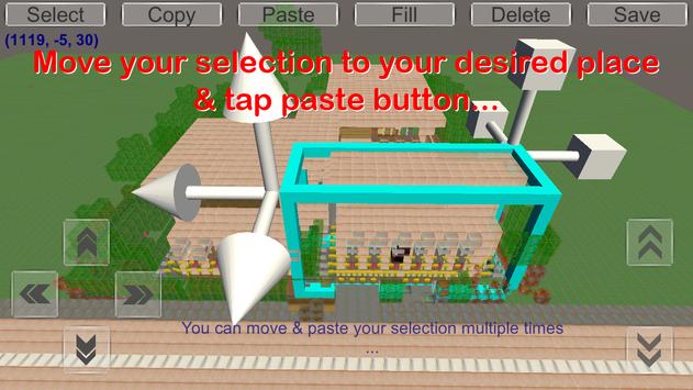 Our app is the easiest & smartest world edit tool for Minecraft PE because it works by selecting your blocks & dragging and dropping to the place you want. You can preview where you will paste your selection like a house, castle or a vehicle.