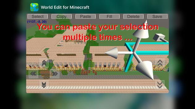 To edit your worlds, you can just select, copy & paste parts of your worlds. You can drag and drop your selections like home or castles anywhere you want in your worlds. In addition, you can see your selections & where you will paste them. You can preview before pasting. You can move & resize your selections. World editing is much more simple, easy & fun to use.