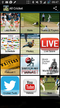 Best Cricket online application. News, statistics, players, teams, results, calendar, photos, videos, twitter, podcast (you can hear the chapters in the background).