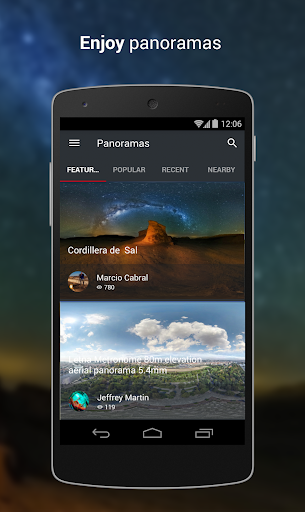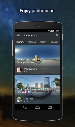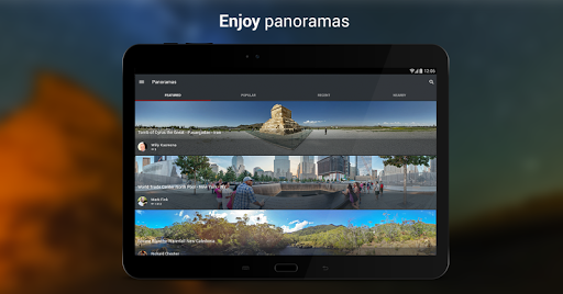 * View the best, most popular, most recent, and most nearby panoramas to your current location.