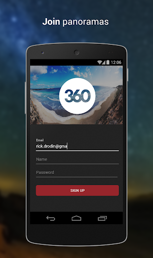 * Share panoramas on your Facebook wall, in your Twitter account, or by email.
