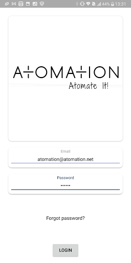 Log into the Atomate It! app using the same username and password for Atomation's online dashboards.
