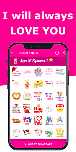 The Love and Romance stickers app contains a large collection of beautiful and varied stickers for WhatsApp to express your love for your family, friends and loved ones that were chosen and carefully selected to suit your taste and impress your lover, and they were classified into sections so that it is easy for you to choose what suits you from the stickers and what you see suitable for your lover or the person who You want to send it to him to show him your love and your beautiful feelings.
