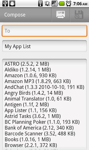 * Send list of applications via e-mail