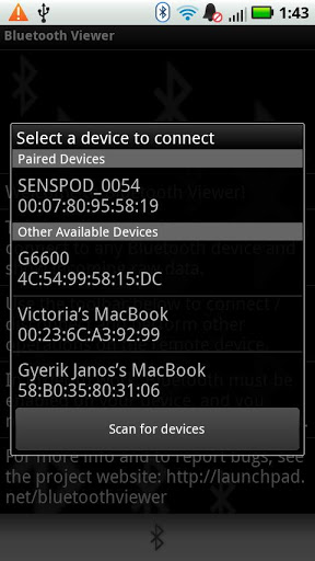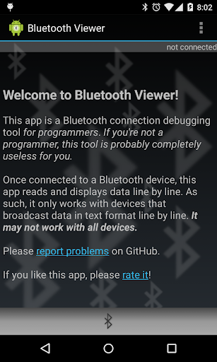 Please report problems or feature requests by email or using this page: https://github.com/janosgyerik/bluetoothviewer/issues