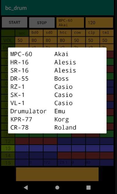 Select from 10 types of drum sets (5 types of rock and 5 types of techno), and switch to play.