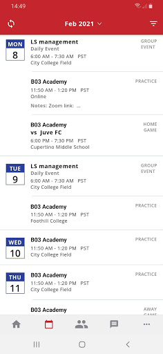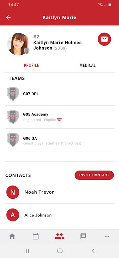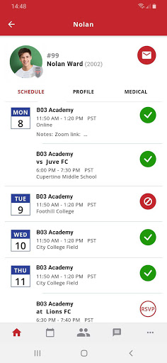 2. Game Roster: game rosters can be shared by the coach to be viewed by the team.