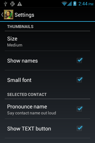 ● The contact's name can be pronounced out loud, using your device's default text-to-speech settings. This can be disabled.
