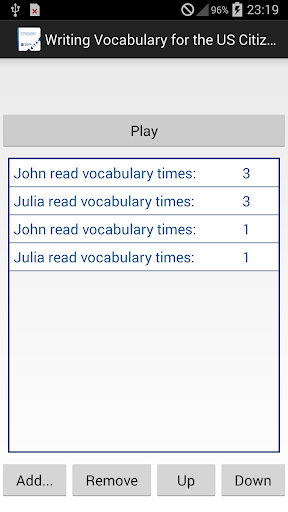 Listen Writing Vocabulary for the US Citizenship Naturalization Test by any times and any sequence.