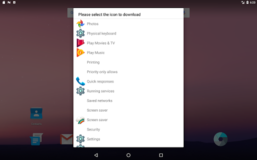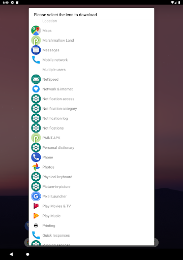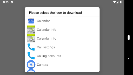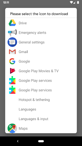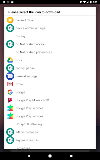 Upon launch, a list will show up, which includes every activity of each app that is able to be launched along with the icon next to it. Simply select the one you want, then press the enlarged icon afterward to save it to the pictures folder on your device.