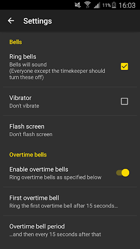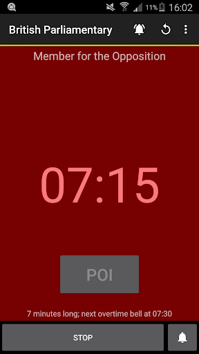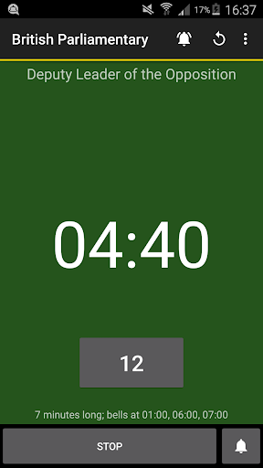 Debatekeeper is a timer for debates with automatic bells. It can sound a bell, vibrate and/or flash your screen to remind you to clap (for e.g. big rooms where a phone's not loud enough). Focus on the debate; let your phone do the timekeeping for you!