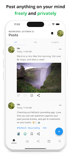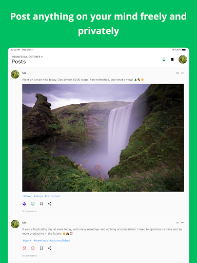 1. Easily post anything on your mind as you would on social media, except 100% private.