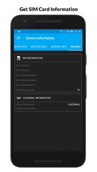like SIM country, SIM operator, SIM operator name, SIM serial number, SIM subscriber id, SIM software version, Voice mail information.