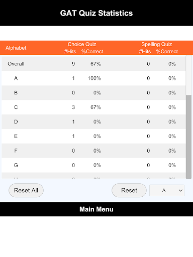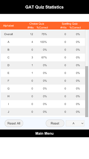 Statistic : Show %Correct statistic from quiz, help you to analysis your weakness and strength.