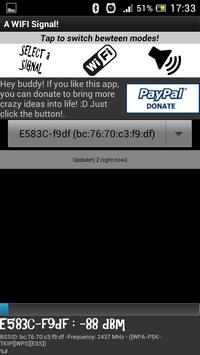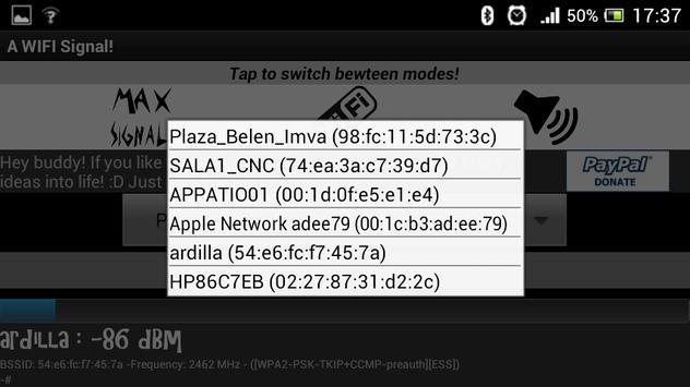 The creator, Enzo Barbaguelatta spent precious days of his life programming this crap of sh... ahem, this beauty program, which will scan for nearby WiFi signal around you, and you will hear a sound indicating the signal strengh/intensity. Look for any particular signal you want, or search for the maximum signal you get close (if you're really desperate for some ones). Go walking around your house or your office discovering how far your WIFI signal will reach (or how sucks), or have fun finding bizarre signals either walking, on public transport or from the comfort of your car. The possibilities are uuuuunlimiteeeed! :D