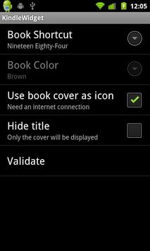 Kindle Widget enable you to add home screen shortcuts to your preferred Kindle Books. You can customize each shortcut by setting the color of the icon.