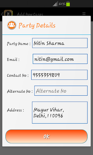 * Captures all necessary information related to case, be it the client contact, the court or the opposite lawyer.