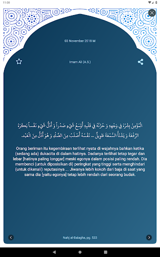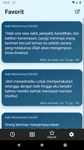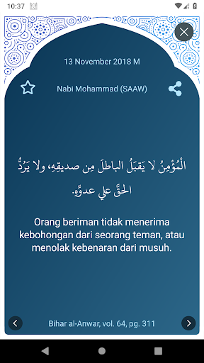 The app is overall good, but it doesn't have an option to view hadiths using the app, so the user is restricted to only one hadith per day. I don't like that. Also, it would be much better if the app looked more advanced and developed.
