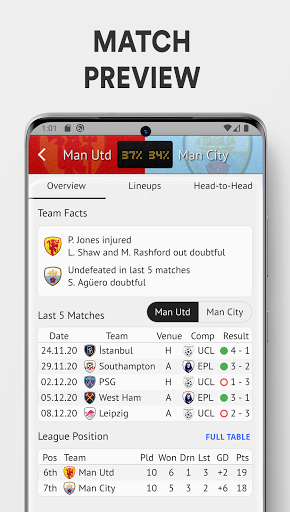 • Comprehensive match preview;