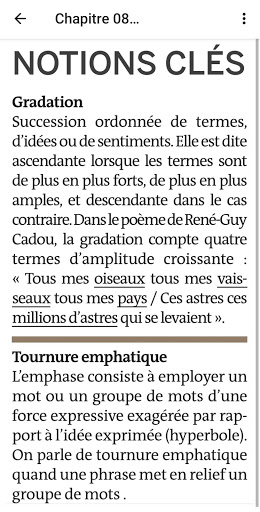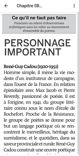 수백 명의 학사 환영 매년 학교 지원을 통해 우리는 캡 미션 카사 블랑카에서 자랑 스럽습니다. 프랑스 고등학교 프로그램은 또한 네 작품 (소설,시, 극장 및 논증)을 읽습니다. 이것들은 6 월 말과 7 월의 끝 사이에서 일어나는 구강 BAC의 증거에 사용됩니다. 그들은 자녀들이 텍스트와 프랑스 백의 논문에 대한 의견에 성공하는 데 도움이 될 것입니다.