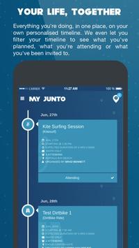 All the activities that you’ve created, the activities that you’ve been invited to, and the activities that you’ve joined are listed in My Junto. It covers all your activities for the next two weeks. From the list you can select any of the activities, which will allow you to view all the activities details, see who’s attending, and access the activities chat. If you have created an activities group or have been invited to an activities group, all the details will be listed here in My Junto.