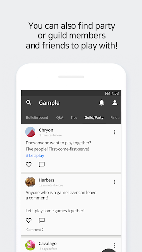 ■ Recruit guild and party members/ find friends