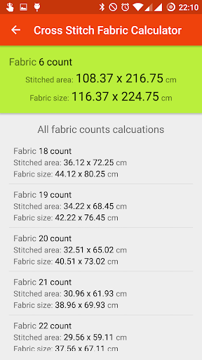 Cross Stitch Fabric Calculator allows you to calculate the size of pattern based on your stitch count and fabric thread count.