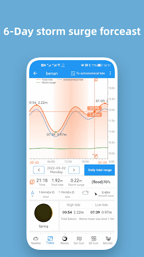 1.Astronomical tide¤ts forceast:upgrading algorithm of tide model in December 2021,grid precision significantly improved compared to the previous model.Support offline access to the real-time tide and moon phase of favorite sites.