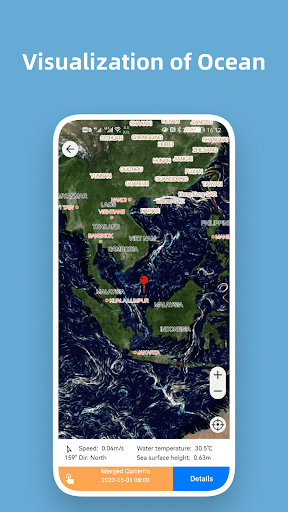 5.Ocean currents forceast: support access to current speed, direction, temperature, salinity data of both superficial current and 50 varied depths currents.