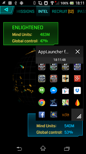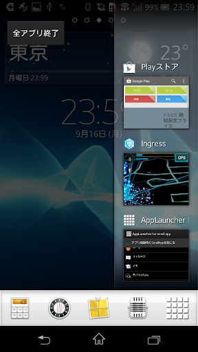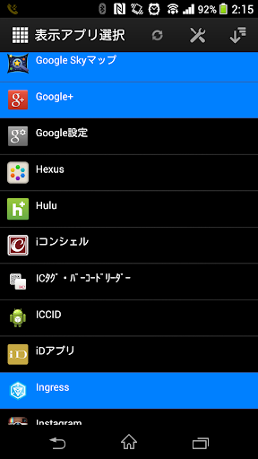 右上のアイコンをタップすると、選択したアプリの一覧が表示されます。