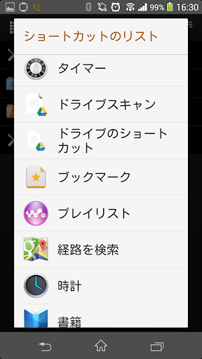 矢印が2方向に分岐しているアイコンをタップするとショートカット選択画面に遷移します。