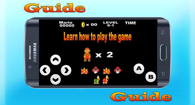 This app is an unofficial guide for super mario bros, made by a fan. It is full of walkthrough, tips and tricks, the best of levels secrets and more about mario game. This app is a perfect tool for beginner and intermediate players to find some useful information about the game and learn how to play it in the best way, and finish all missions and levels and make mario game easy to play.