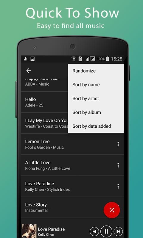 - Search album, artist, song, folder, playlist very fast.