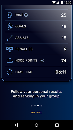 - Each player can see his own performance (goals, assists, wins, distance, etc.) and compare it to other teammates.
