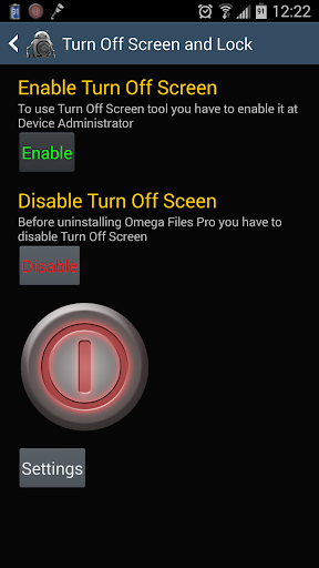 - Omega Files Pro requires device administrator policy to lock screen